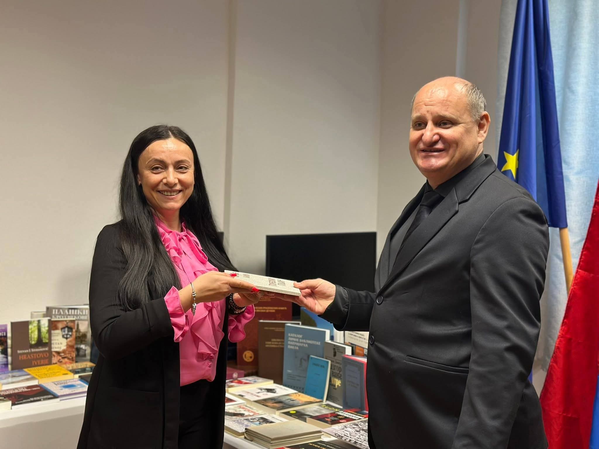 Генерални конзул Владимир Марјановић и вицеконзул Игор Лазаревић, 31.12.2025. године, посетили су Заједничко веће општина и Српски културни центар у Вуковару и том приликом уручили донацију књига, поклон Народне библиотеке Србије.